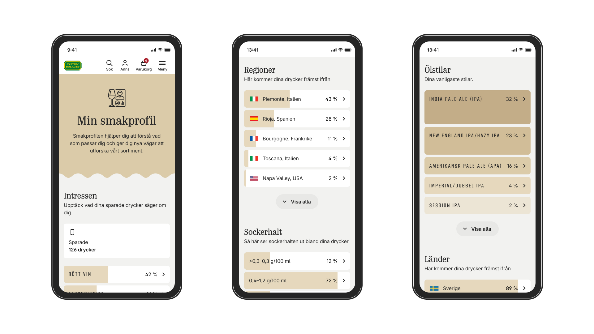 - Mina intressen: Se statistik på vad du gillar utifrån dina sparade drycker.